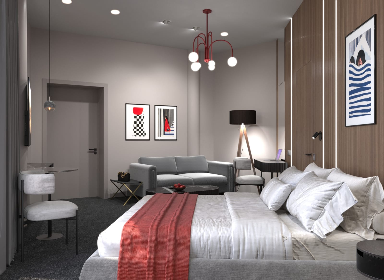 - Мягкая зона с диваном и ТВ + журнальный столик