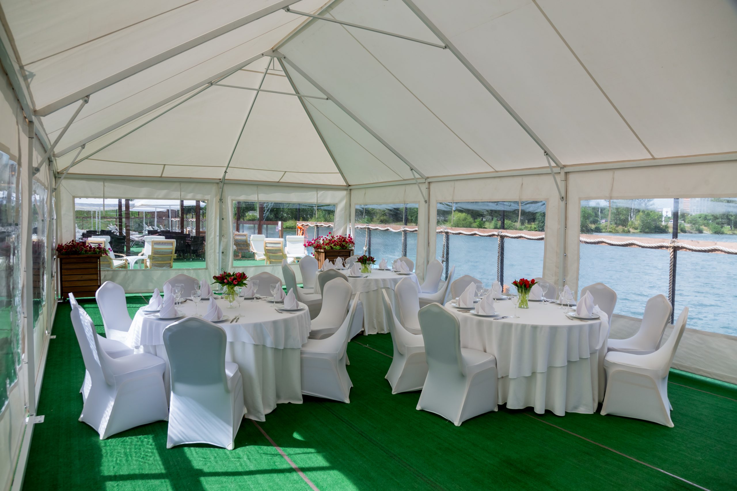 На этой площадке ваши мечты о камерном и незабываемом мероприятии становятся реальностью. Вода плещется совсем рядом, создавая неповторимую атмосферу. А чтобы погода не внесла свои коррективы, шатер легко трансформируется в уютное пространство с системой отопления. Наслаждайтесь близостью к природе, не жертвуя комфортом!